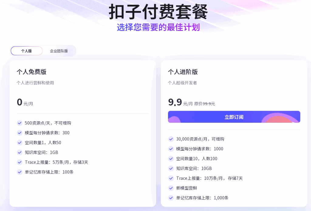 扣子每天送500点,用完就只能氪金或等0时刷新,氪金的话,目前等于白菜价。