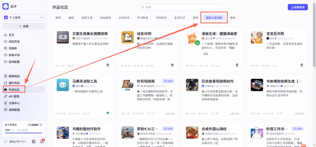 一类就是有一点门槛的n8n、扣子这种。使用这种方式制作ai视频的话,要么自己搭建工作流,要么用别人搭建好的工作流(可能需要付费)。本期简单说一下首先打开扣子地址:https://www.coze.cn/home