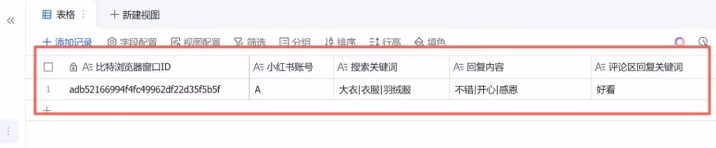 下面是比特浏览器的配置字段,把需要进行回复的账号,以及回复内容、关键词,需要提前填写到模板里。