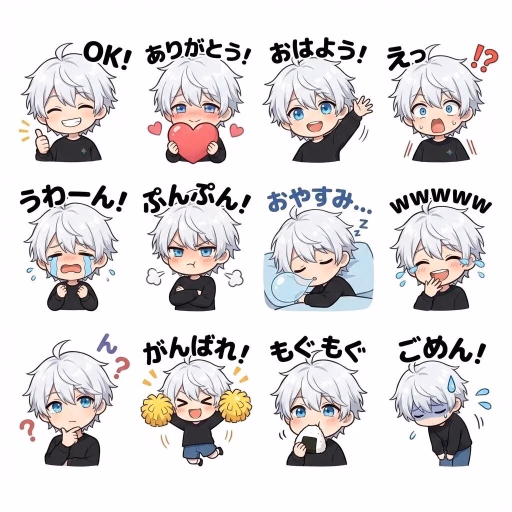 提示词:(@0uhly2VacK23204)「上传一个图片」将图片中的角色 Q 版化,制作成 12 款 LINE 表情包,每款都有不同的表情、姿势和台词。