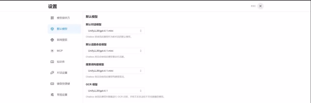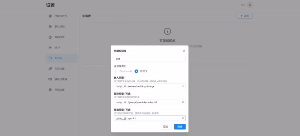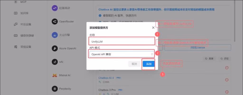填写并点击“添加”后,菜单中会多出一个模型提供方UnifyLLM。