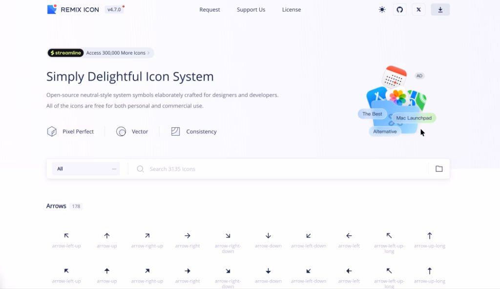 - 推荐理由: 拥有超过 5200+ 个图标的庞大开源库。