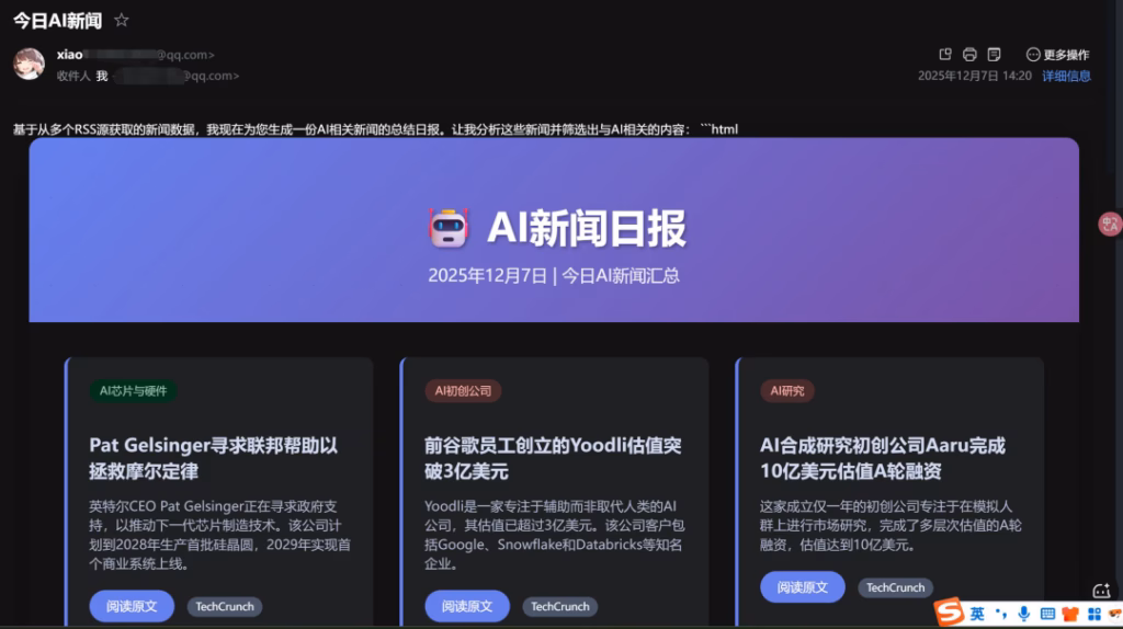 每天早上8点自动从我想要的站点抓取AI相关新闻,