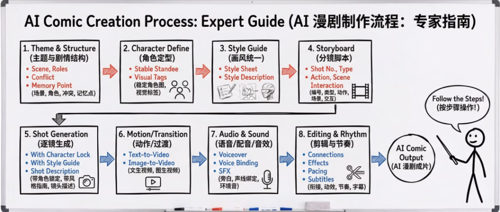 但我其实并不太懂怎么做AI漫剧,于是我最近疯狂学习,并跟朋友也交流了一下。