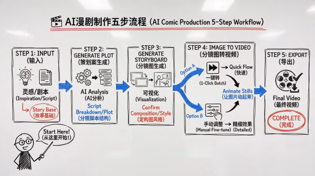 Seko把AI漫剧那套复杂的SOP(标准作业程序),封装成了一个小白也能无脑上手的流程。