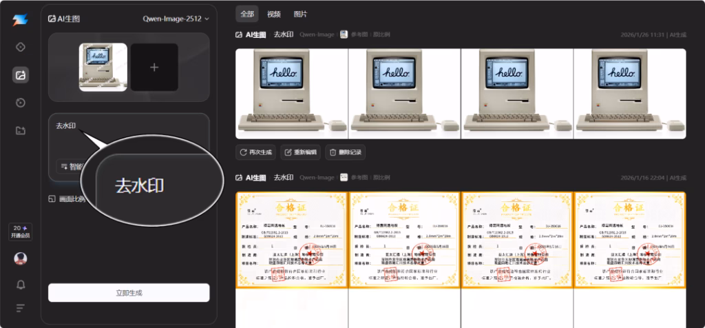Qwen-image 的去水印效果的确还不错,但你可能会觉得只能在手机端操作会比较麻烦