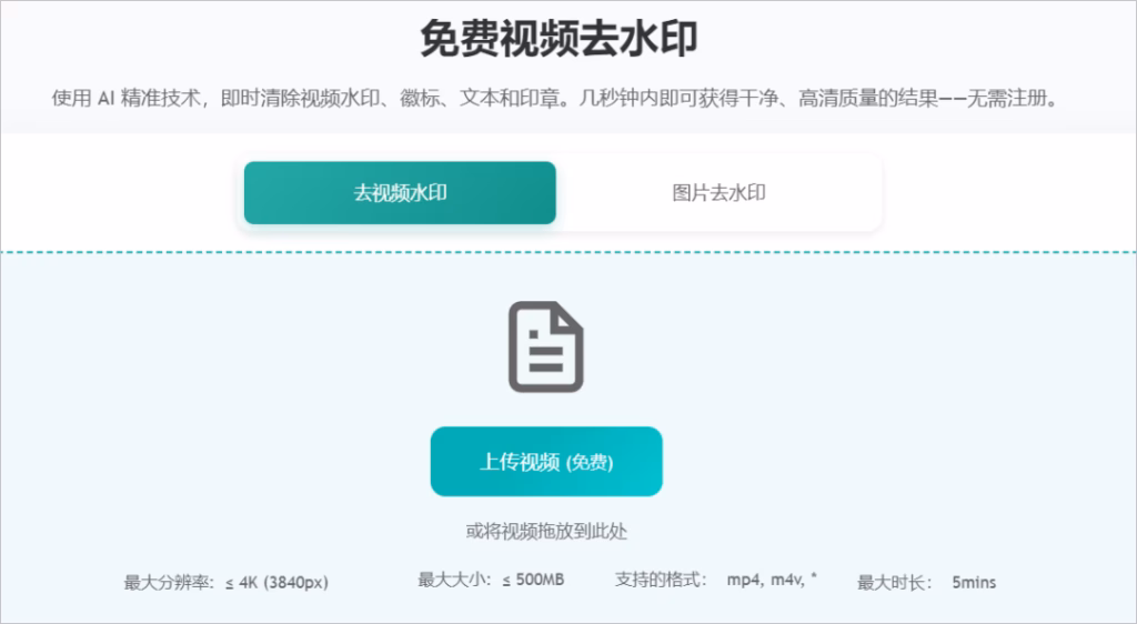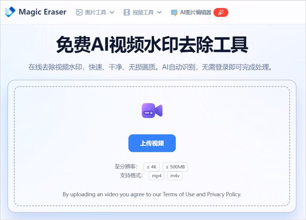 点击网页顶部的视频工具,还可以进行免费视频去水印去除